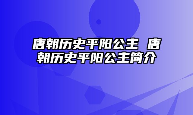 唐朝历史平阳公主的介绍就聊到这里吧,感谢你花时间阅读本站内容,更多关于唐朝历史平阳公主简介、唐朝历史平阳公主的信息别忘了在本站进行查找喔。