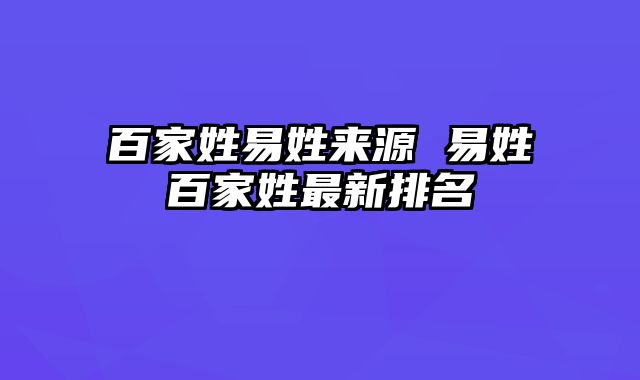 关于百家姓易姓来源和易姓百家姓最新排名的介绍到此就结束了,不知道你从中找到你需要的信息了吗 ?如果你还想了解更多这方面的信息,记得收藏关注本站。