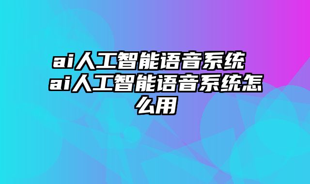 本篇文章给大家谈谈ai人工智能语音系统到此结束了,以及ai人工智能语音系统怎么用对应的知识点,希望对各位有所帮助,不要忘了收藏本站喔。